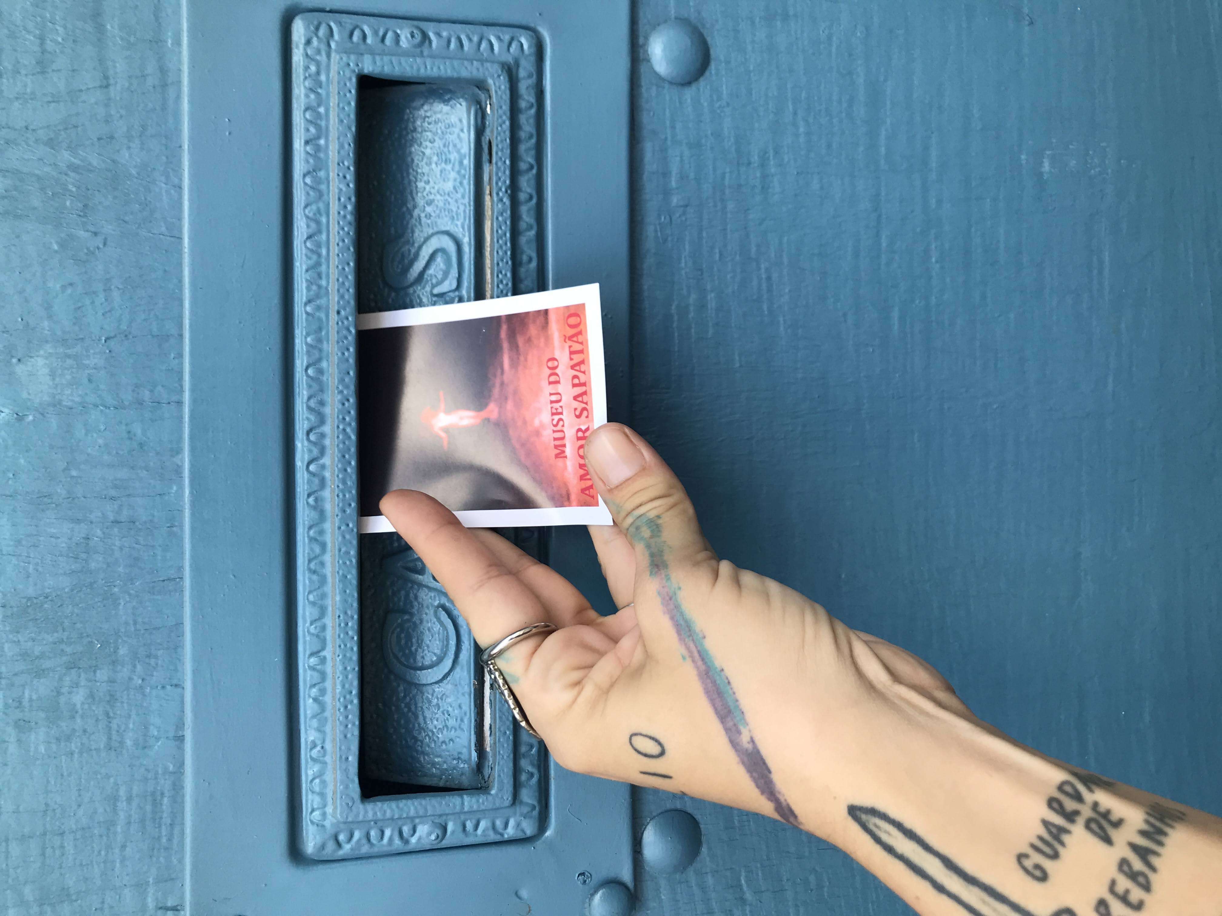 Performance visual de entrega de santinhos informando da inauguração do Museu do Amor Sapatão, museu imaginado que é inaugurado sempre que alguém o imagina e pensa sobre ele. Forma o que chamo de comunidades fabulatórias, pessoas que se mobilizam em torno dos pensamentos sobre como seria um Museu do Amor Sapatão e que, involuntariamente, seguem criando este espaço a partir da mobilização de seus conhecimentos prévios e referências acerca dos museus e do amor sapatão. O santinho já foi distribuído em diversas cidades do Brasil e também em Berlim, dentro da coletiva Degenerado Tibira, em fevereiro e março de 2025.